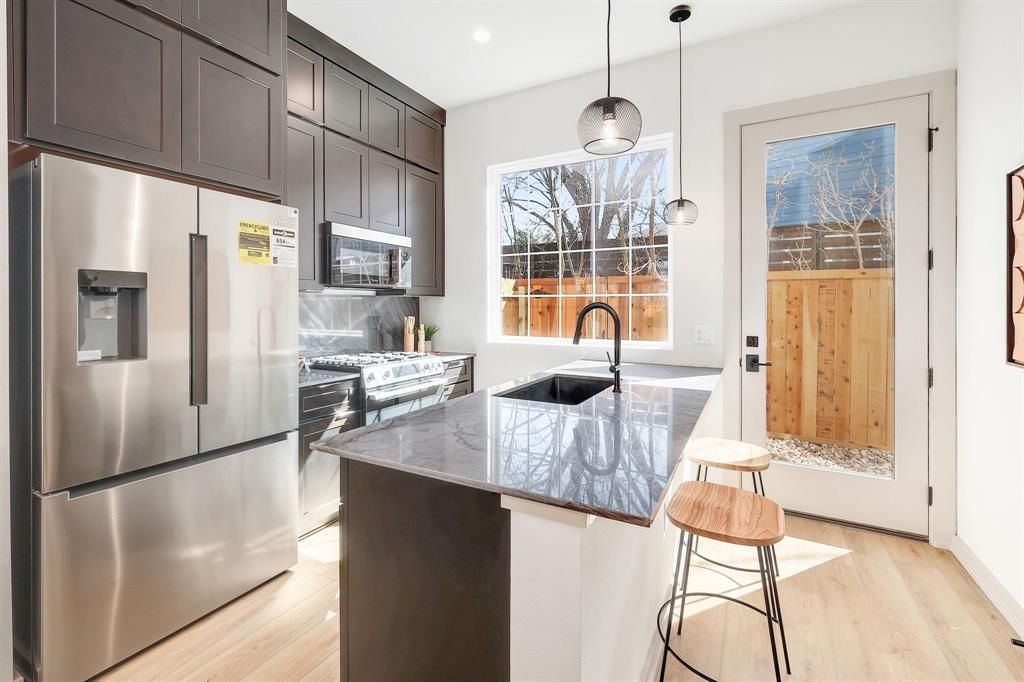 This is, genuinely, one of the most thoughtfully designed ADU plans youll come across. Detached and intentional, it feels less like an accessory unit and more like a private retreat?designed for real living, not compromise. The main level features a seamless open floor plan, where the kitchen, living, and dining spaces flow effortlessly together. The kitchen is both functional and elevated with stainless steel appliances including a gas range, refrigerator, and microwave, designer pendant lighting, and countertops that extend cleanly into the backsplash for a cohesive, modern finish. A dedicated pantry, generous storage, a guest bathroom, and a rare oversized utility room add a level of practicality thats almost unheard of in an ADU. A covered carport enhances everyday ease. Upstairs, youll find two spacious retreats, each with vaulted ceilings, walk-in closets, and abundant natural light, creating an airy, calming atmosphere throughout. The primary retreat feels quietly luxurious, featuring an ensuite bath with dual vanities and a glamorous walk-in shower wrapped in floor-to-ceiling tile?spa-like, but effortless. Additional highlights include a private fenced yard, ceiling fans, designer light fixtures, and thoughtful finishes throughout that elevate the home without overstatement. Clean lines, intentional design, and livability lead the way. Whether used as a guest residence, rental opportunity, or a standalone home, this detached ADU delivers rare functionality, elevated design, and a sense of calm thats hard to find. *Tenant to independently verify all information.