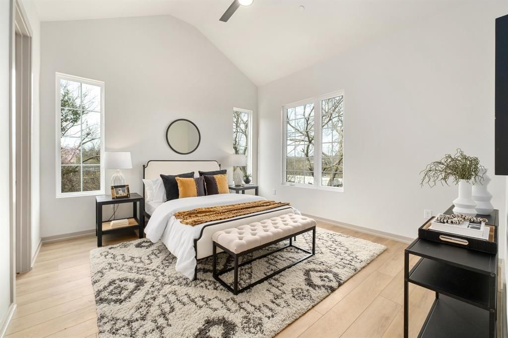 Thoughtfully designed by Sett Studio, an award-winning, health & wellness?focused builder, this residence is part of The Bunche Project?a boutique micro-community of just 12 homes in East Austin, where timeless design meets modern living. This two-story home offers 3 bedrooms, 2.5 baths, and 1,513 square feet of beautifully functional space. The main level features an open, easy-flow layout designed for everyday living and effortless hosting. The kitchen anchors the space with breakfast bar seating, stainless steel appliances including a gas range and refrigerator, and a dedicated pantry, while oversized windows flood the home with natural light. Thoughtful storage is integrated throughout, including under-stair storage, a mudroom-style nook, and a stackable washer/dryer closet with adjacent linen storage?details that make daily life feel seamless. Upstairs, light hardwood flooring continues throughout, creating a cohesive and calming feel. All bedrooms feature tall vaulted ceilings, adding volume and airiness. The primary retreat feels intentionally serene, with a spacious walk-in closet and a spa-inspired bathroom featuring dual vanities and an impressive walk-in shower wrapped in floor-to-ceiling tile. Two additional bedrooms share a well-appointed bath with a dual-sink vanity, perfect for guests or flexible living. A fenced private outdoor space extends the living experience outdoors, offering a quiet place to unwind. Located near East Austins parks, trails, restaurants, and cultural favorites, this home delivers thoughtful design, wellness-forward living, and a lock-and-leave lifestyle in one of Austins most vibrant neighborhoods. *Tenant to independently verify all infomation. Photos of staged B4- same floor plan.